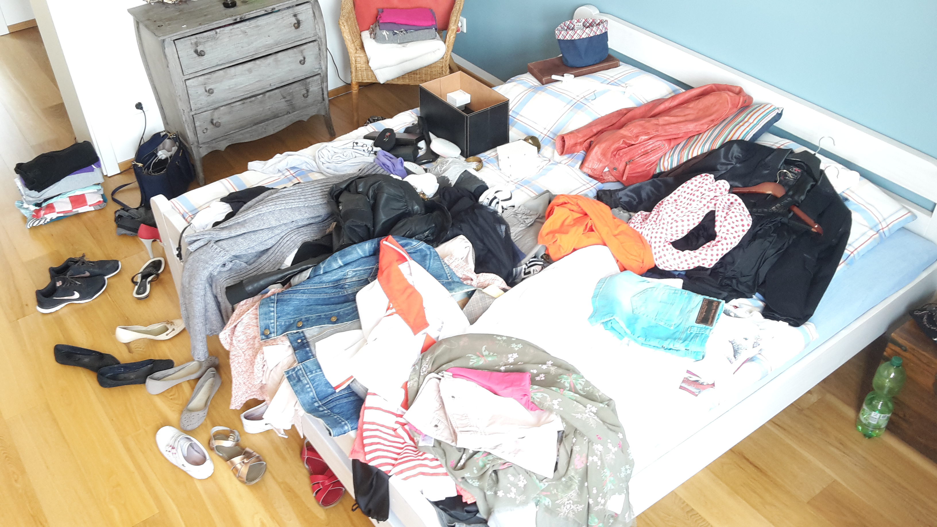 Nachdem Frau Ruck bei uns zu Hause angekommen war, kamen wir ziemlich schnell zur Sache. Wir sind wirklich jedes Kleidungsstück einzeln durchgegangen, haben es aus dem Schrank genommen und dann entschieden, was damit „passieren“ soll.